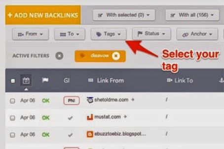 click on “Tags” and select “Disavow”. Hear you can see a list with all of the