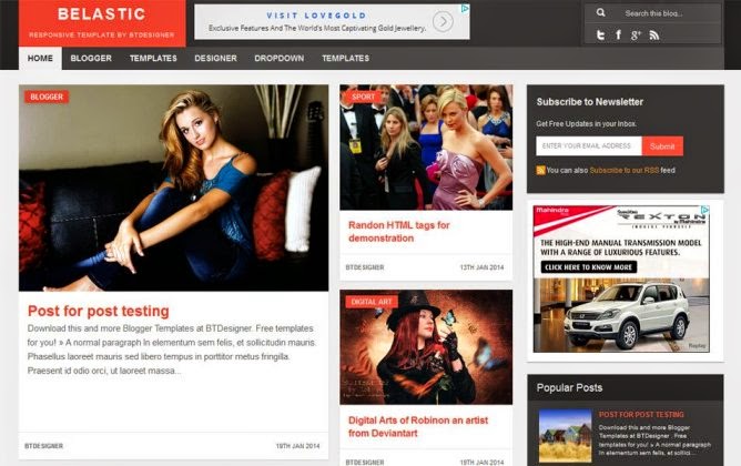 is a 2 columns responsive Blogger theme with top navigation menu, featured